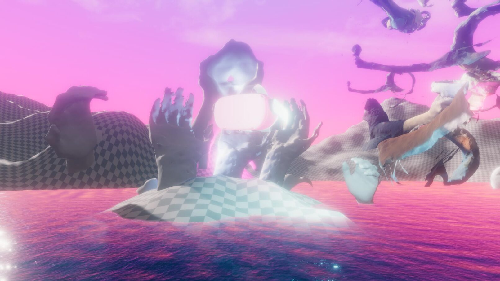 Fractura es un ensayo inmersivo que indaga en la experiencia de realidad virtual que ofrecen dispositivos como el Oculus Quest 2. Mientras nos sumergimos en mundos envolventes, las gafas escanean continuamente el espacio que nos rodea y monitorizan nuestros movimientos con 4 cámaras de infrarrojos integradas y 2 controladores con acelerómetros y giroscopios que recogen datos sobre nuestro cuerpo y nuestros gestos. El funcionamiento del propio dispositivo, así como las lógicas comerciales que lo sostienen, en realidad, esconden costuras y opacidades que poco tienen que ver con las estéticas minimalistas de Silicon Valley. El dispositivo también es más antiguo de lo que sugiere la superficie suave, lisa y aparentemente sin historia de los dispositivos tecnológicos personales, ya que este fenómeno es tan lejano como los primeros corazones humanos que soñaron con la posibilidad de una realidad en capas.